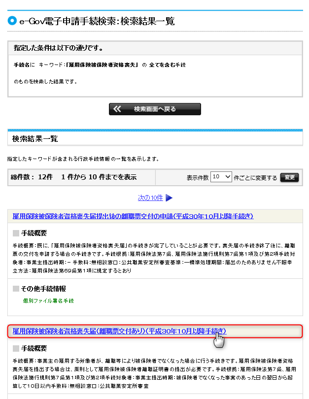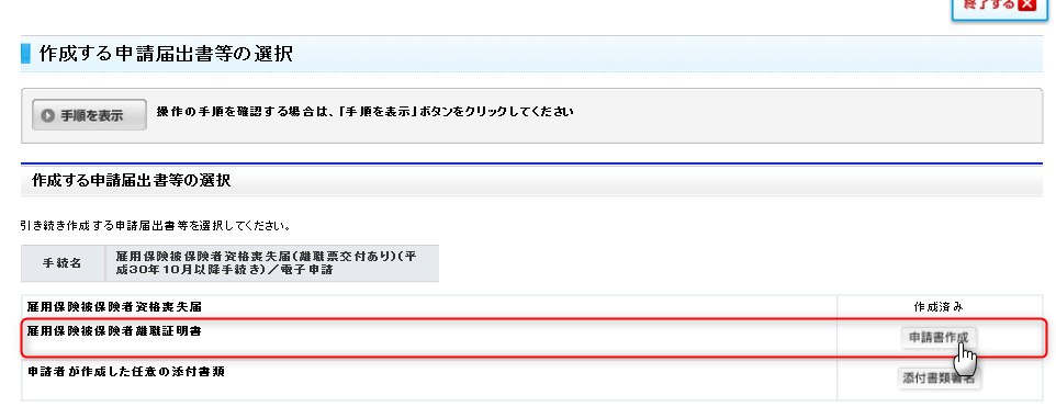 【雇用保険被保険者資格喪失届(離職票交付あり)(平成30年10月以降手続き)】を選択します。