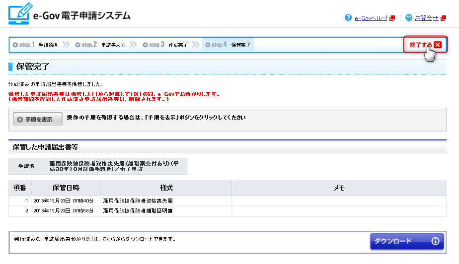 このあとすぐに使用しますが、申請書の提出が終了したら削除してしまっても構いません。