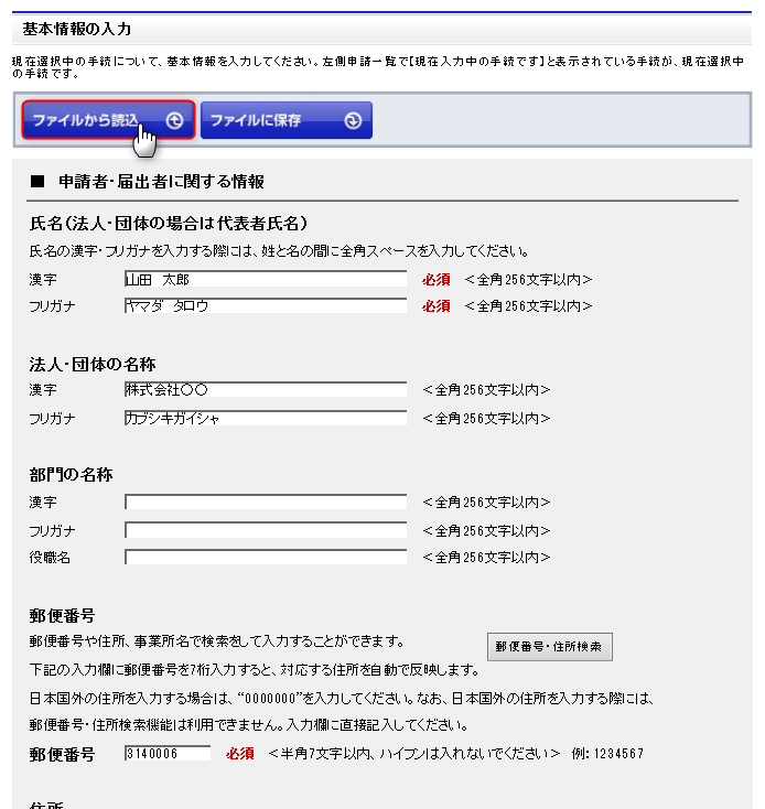 内容をすでに保存している場合は、【ファイルから読込】から呼び出しましょう