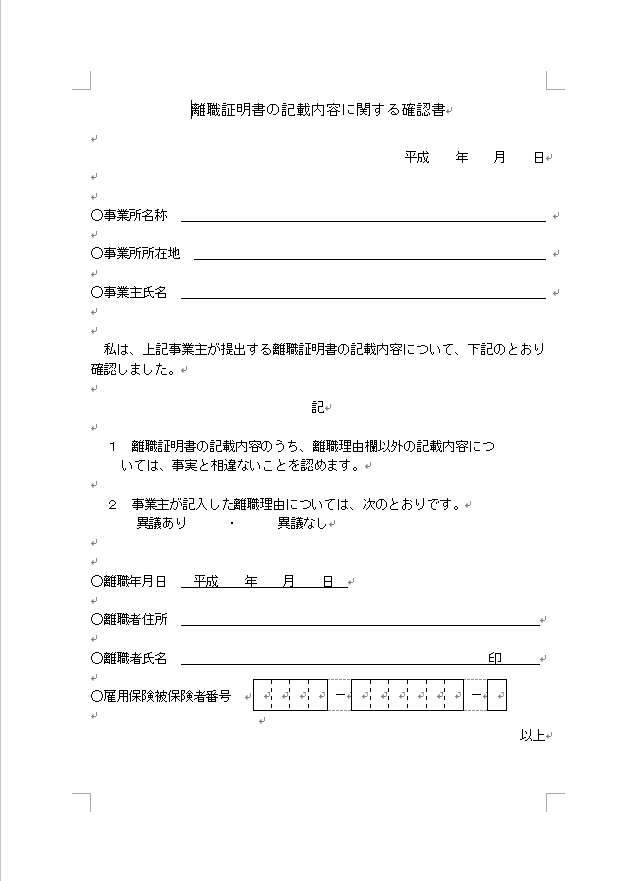 しかし、離職者にこの確認書をもらうことが困難な場合は、事業主がそのもらうことが困難な理由を書類にして添付することとなるのです。