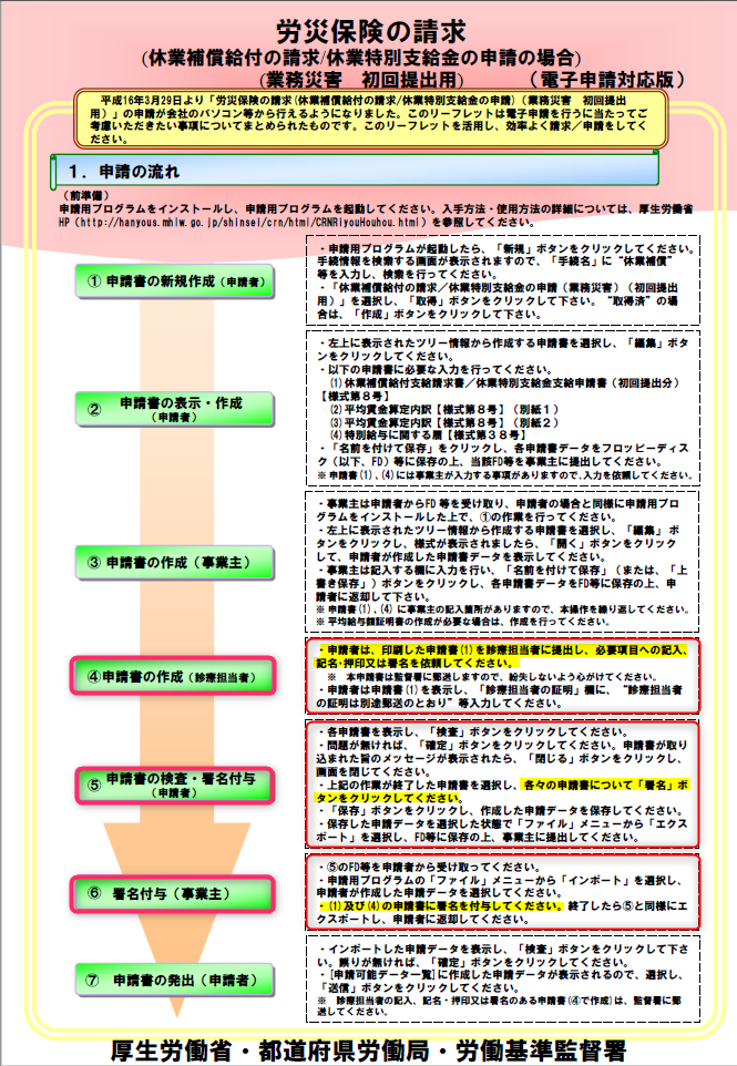このうち、休業補償給付についての申請の流れが説明されています。