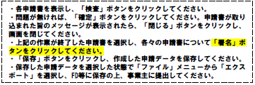 これによると作成した申請書について「署名」ボタンをクリックするとあります。