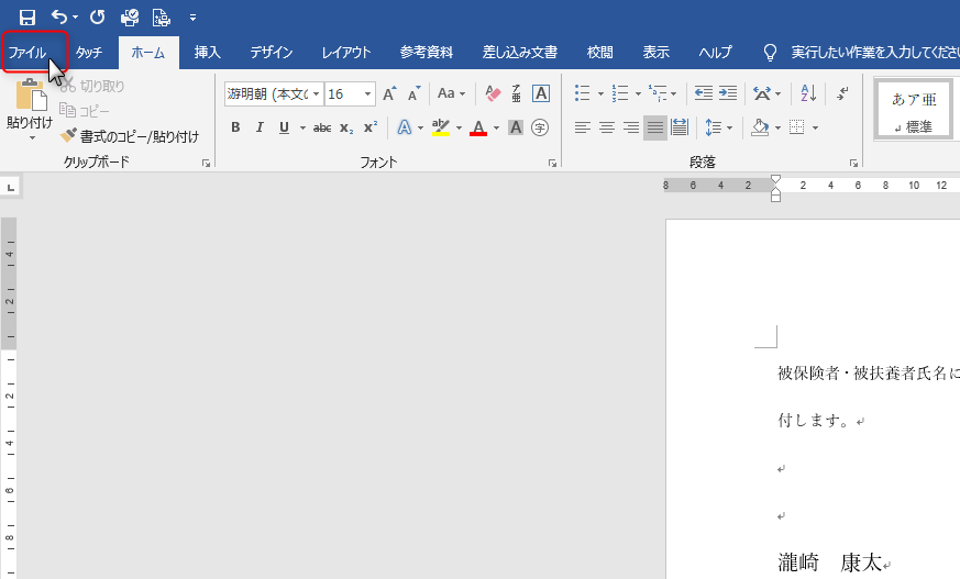 画像のように通常の保存と同じようにメニューから【ファイル】を選びます。