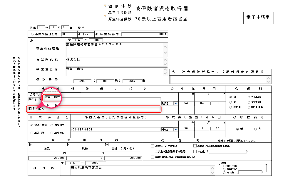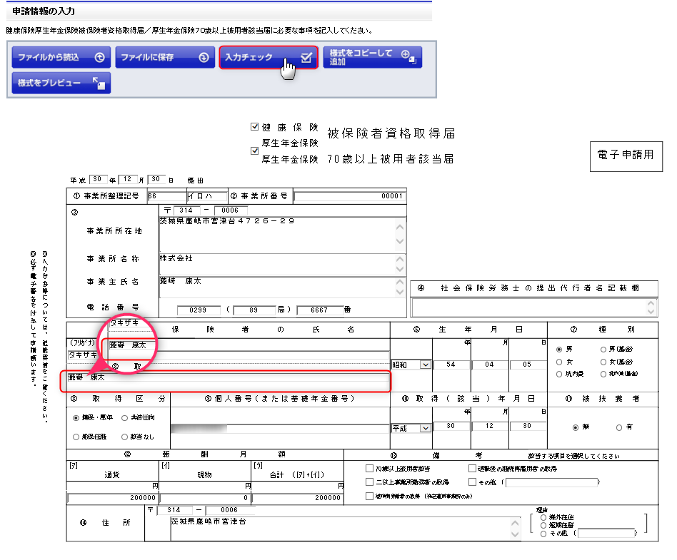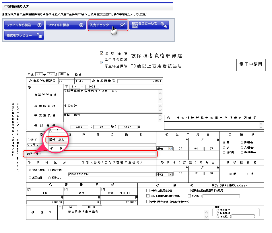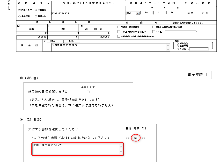 書類の手続ならば、そのまま記入できるのですが、電子申請の場合は、