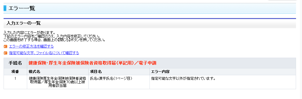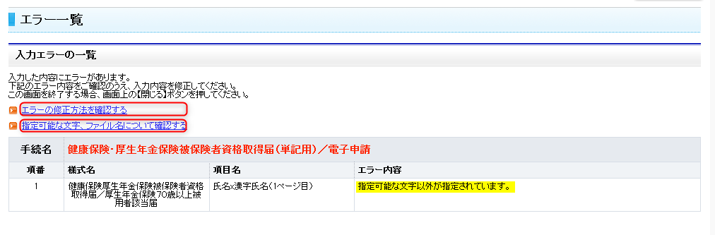 「指定可能な文字以外が指定されています」とメッセージが表示された場合
