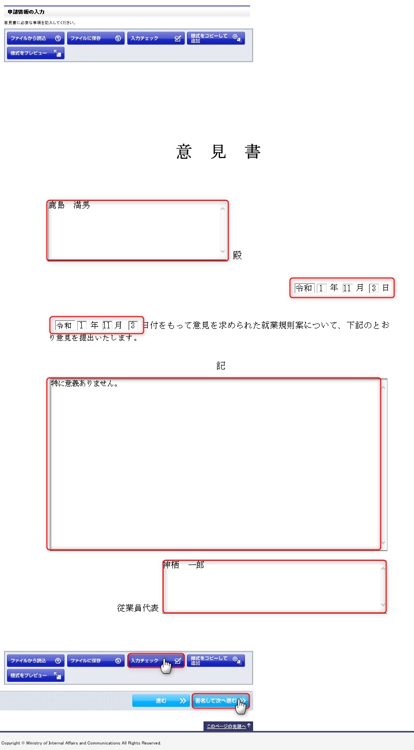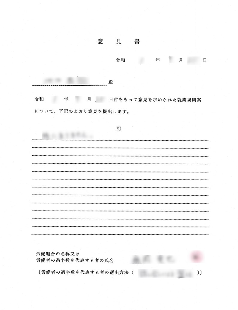 ここでは、労働者代表者から書いてもらった「意見書」を電子ファイル(PDFファイル)にして、添付していきます。