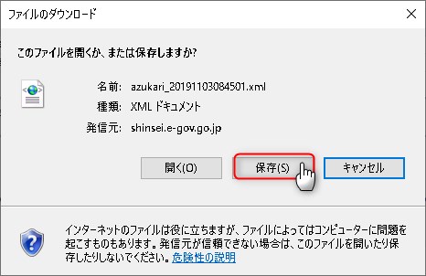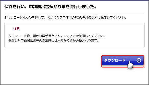 今回は、既にダウンロード済みの預かり票を指定してから【保管】してください。