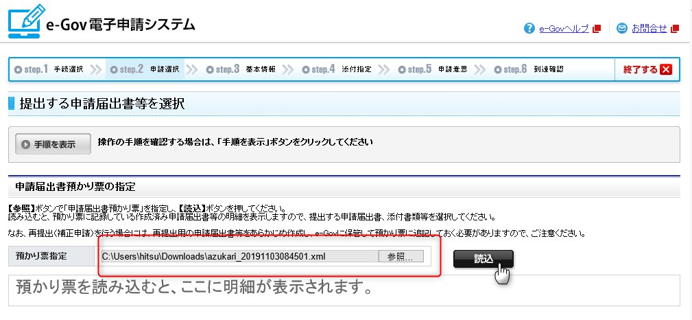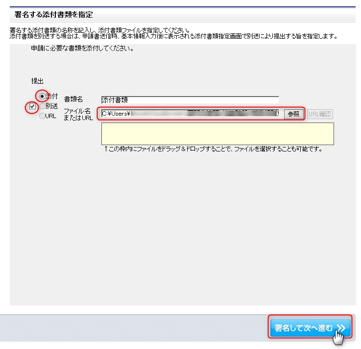 e-Govのウェブサイトから【添付書類】をつけていきます。
