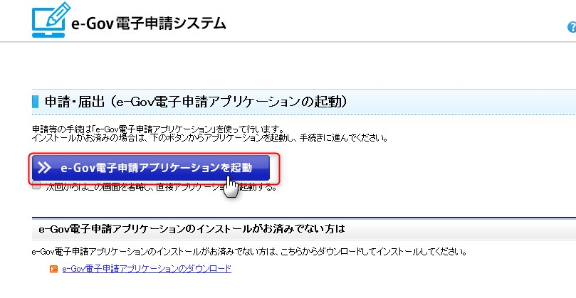 電子申請アプリを立ち上げます。(※最初は、事前設定が必要です。)