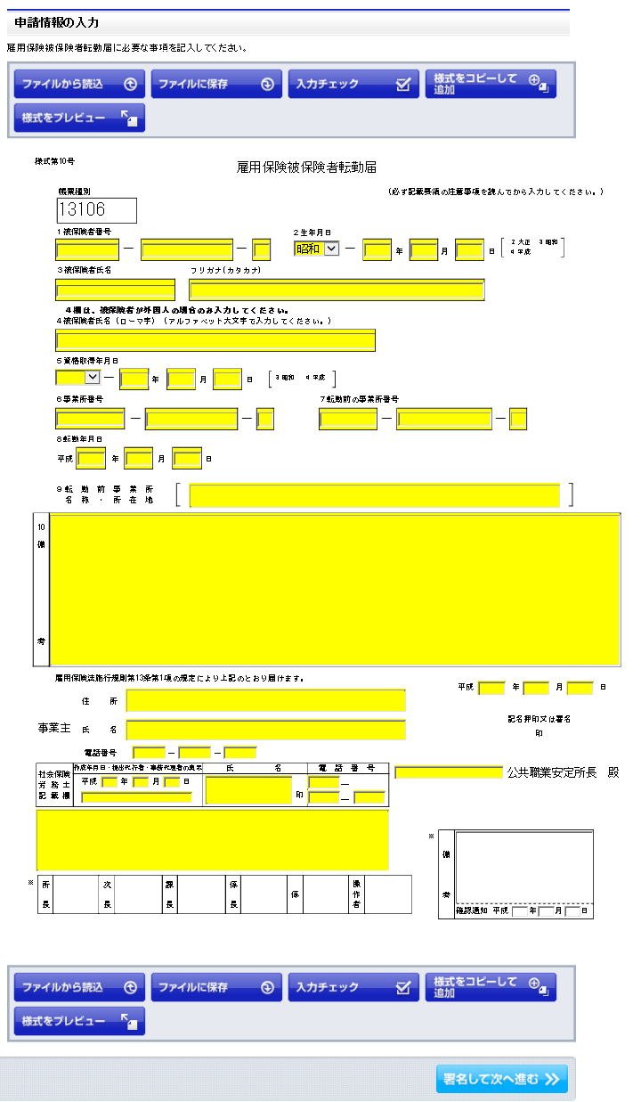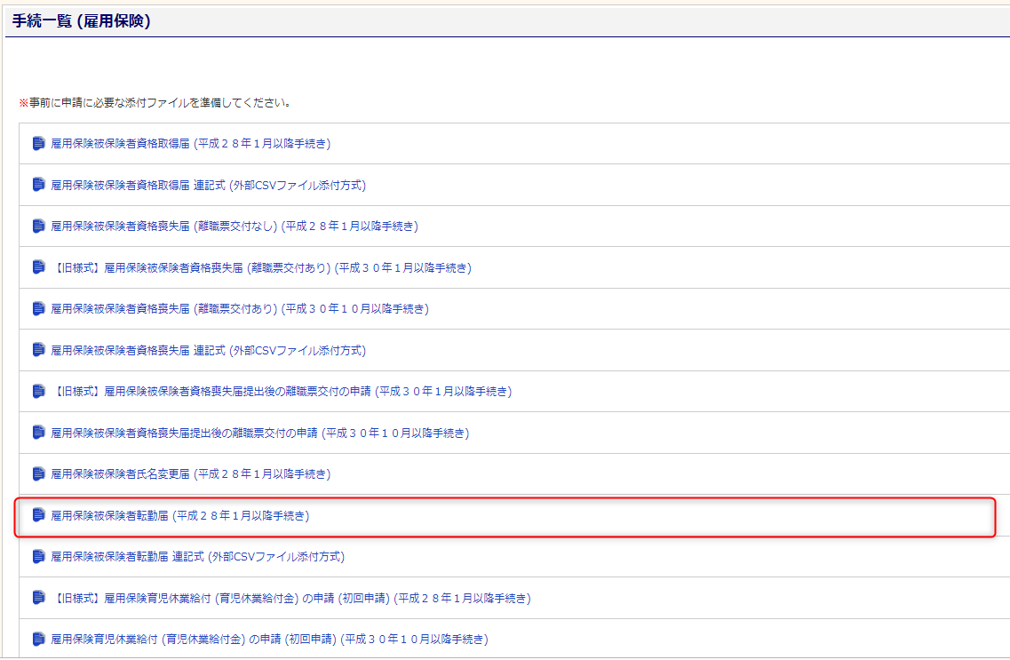 電子申請で雇用保険被保険者転勤届を作成する方法