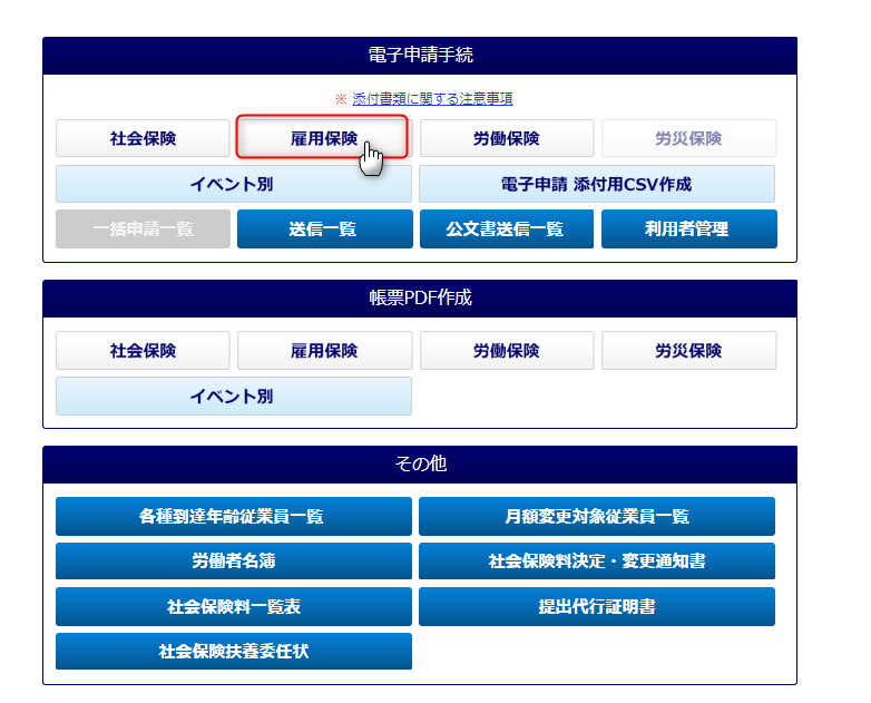 帳票メニューから【雇用保険】を選び