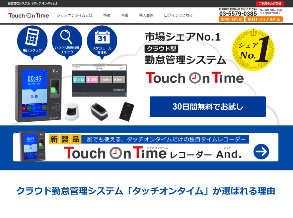 タッチオンタイム(Touch on Time)は業界シェアNo.1であり導入している企業は1万社以上。そしてシステムの継続率は99.7%を誇っています。